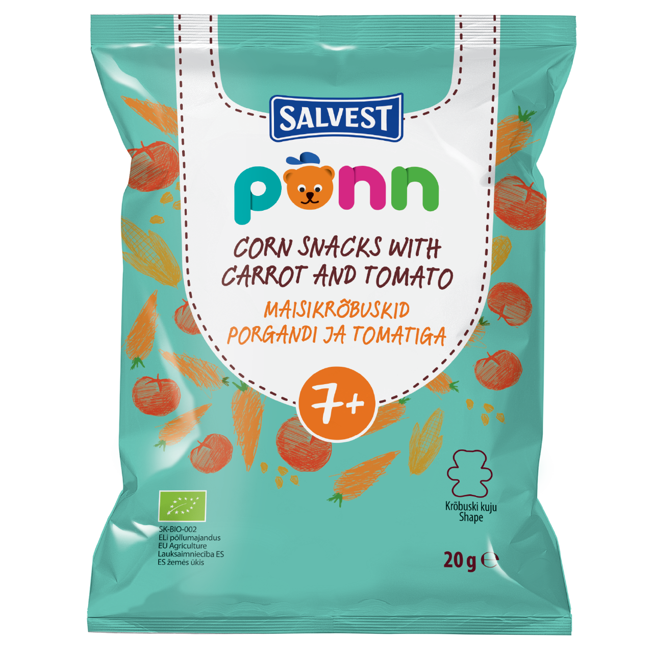 PÕNN Organic Corn snack with carrot and tomato 7+