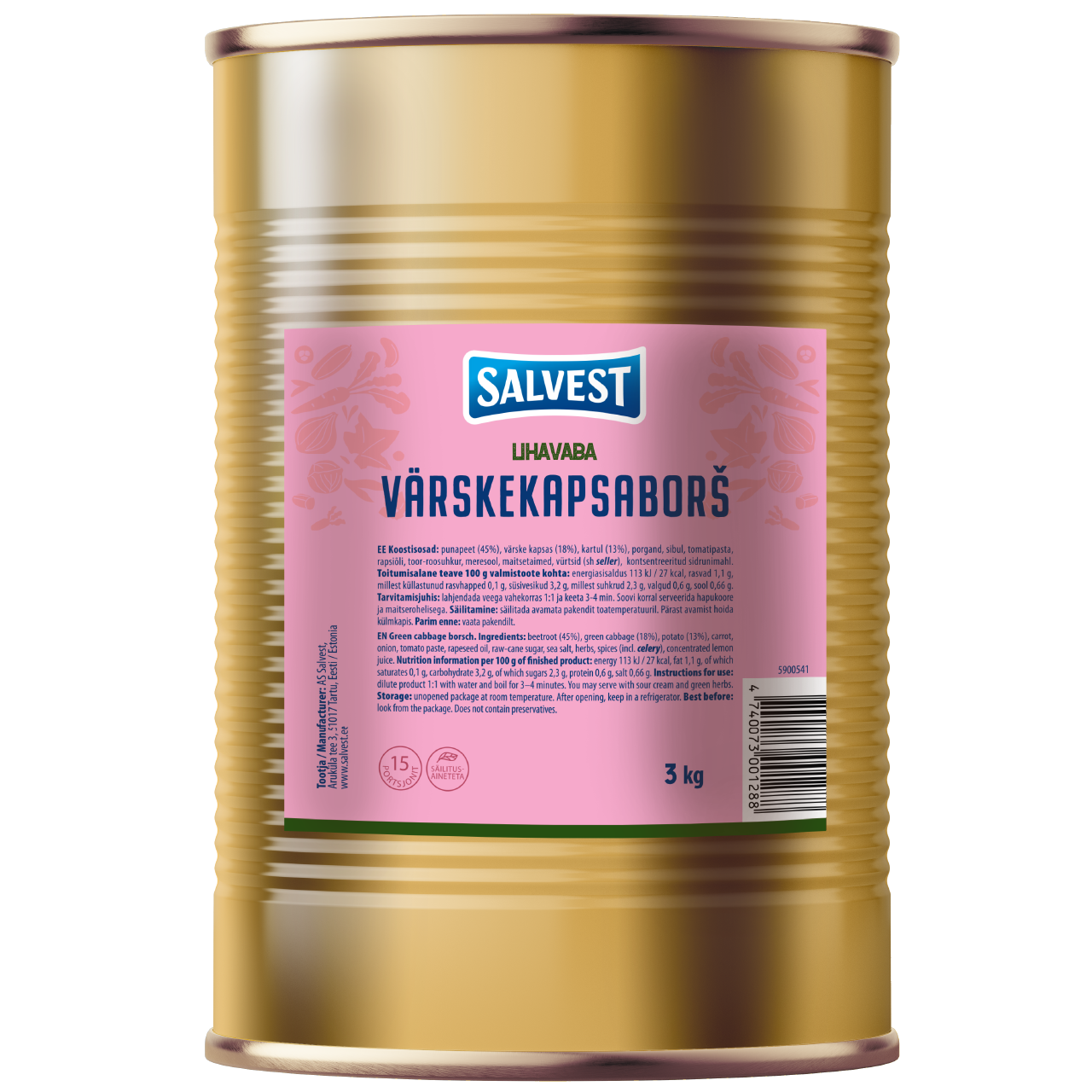Punapeet (45%), värske kapsas (18%), kartul (13%), porgand, sibul, tomatipasta, rapsiõli, toor-roosuhkur, meresool, maitsetaimed, vürtsid (sh seller), kontsentreeritud sidrunimahl.